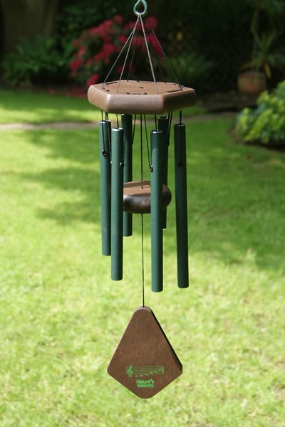 Auf Nylonschnur gehängt, das Klangspiel hat an der Spitze